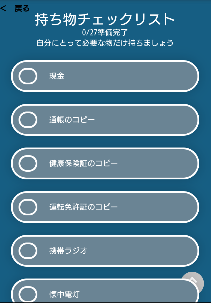 持つべきものを確認し、タップすると色が変わり、あと何が必要なのかわかりやすく工夫されています。